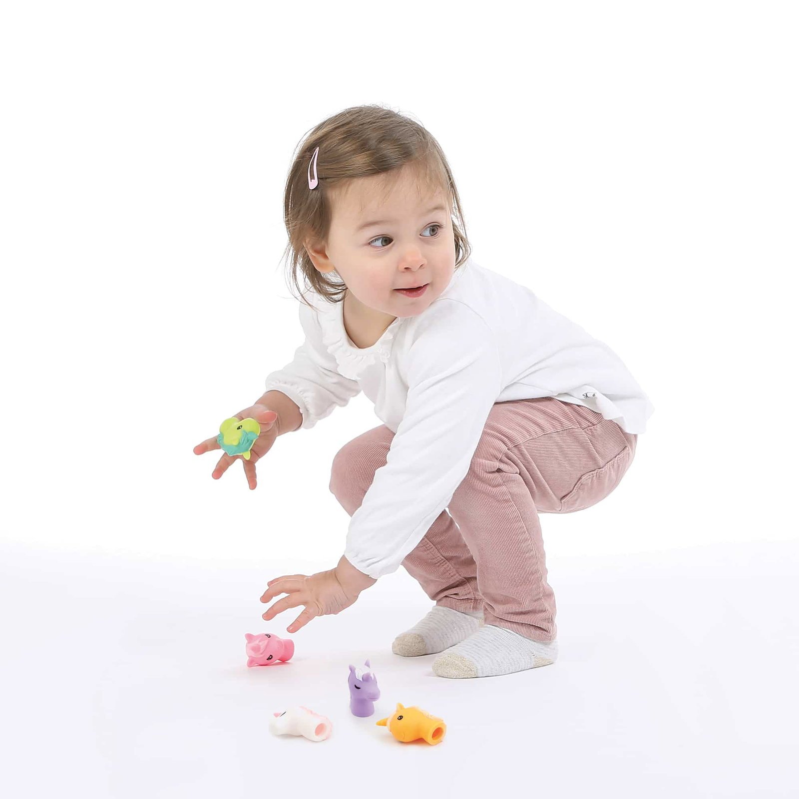- Motricité fine renforcée : Glisser les marionnettes sur les doigts et les animer demande coordination et précision. Chaque mouvement aide bébé à affiner sa dextérité.