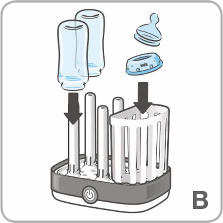 - Protection prolongée jusqu’à 24 heures : une fois le cycle terminé, le couvercle fermé maintient les articles à l’abri des bactéries. Vous pouvez donc préparer les biberons à l’avance et les sortir au moment du besoin.