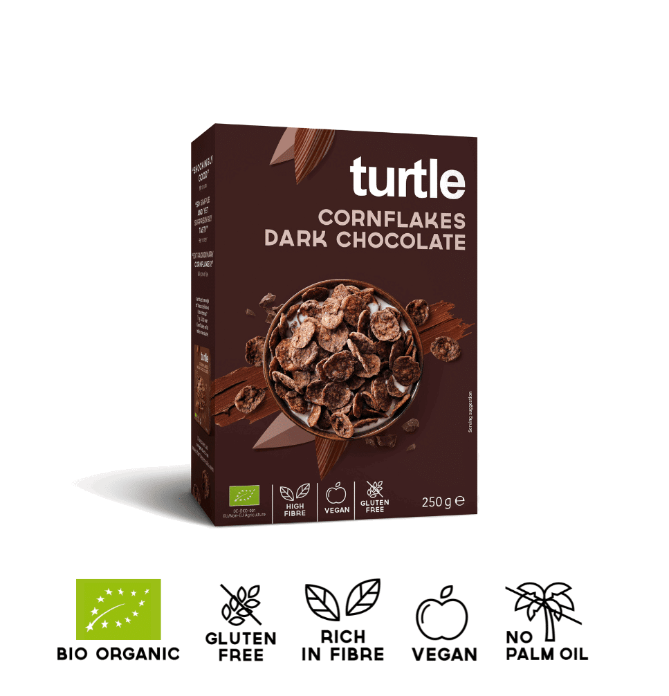 Pour un petit-déjeuner qui allie plaisir et bien-être, voici les Turtle Cornflakes Chocolat Noir Bio. Ces céréales croquantes, enrobées d’un chocolat noir intense, sont une option délicieuse et sans culpabilité. Elles sont spécialement conçues pour ceux qui cherchent une alimentation saine, sans gluten et 100% végétale, parfaites pour les matins pressés ou les weekends gourmands au Maroc.
