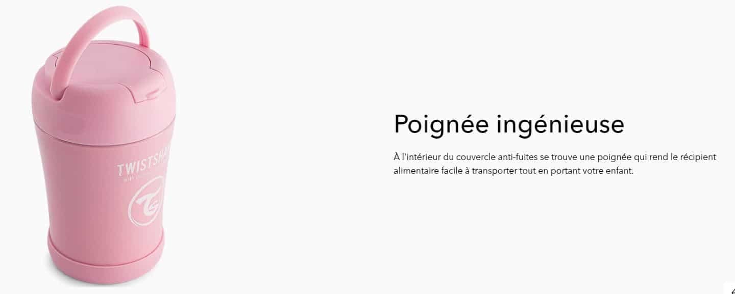 Quand on part en balade ou en visite avec bébé, le repas devient vite un casse-tête : où trouver de quoi réchauffer le plat, comment éviter les fuites, et comment garder une petite cuillère à portée de main sans tout oublier ? Ce pot isotherme gris de 350 ml, signé TwistShake, répond à toutes ces questions d’un coup. En acier inoxydable, solide et élégant, il garde les aliments bien chauds ou bien frais jusqu’à 10 heures – idéal pour les journées au parc ou les longs trajets en voiture au Maroc.