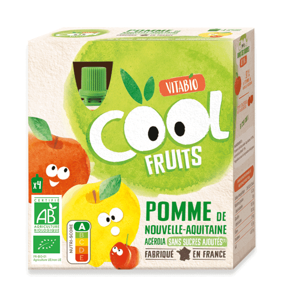 - Purée de pomme 100% fruit : chaque gourde ne contient que de la pomme bio, avec un peu de jus de citron bio et d’acérola pour une touche de vitamine C naturelle.